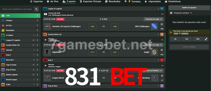 O 831 bet oferece uma grande seleção de opções de apostas em e-sports com probabilidades competitivas